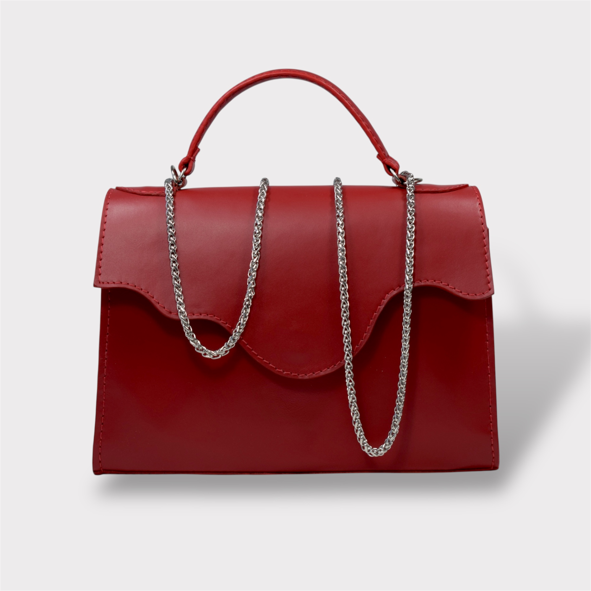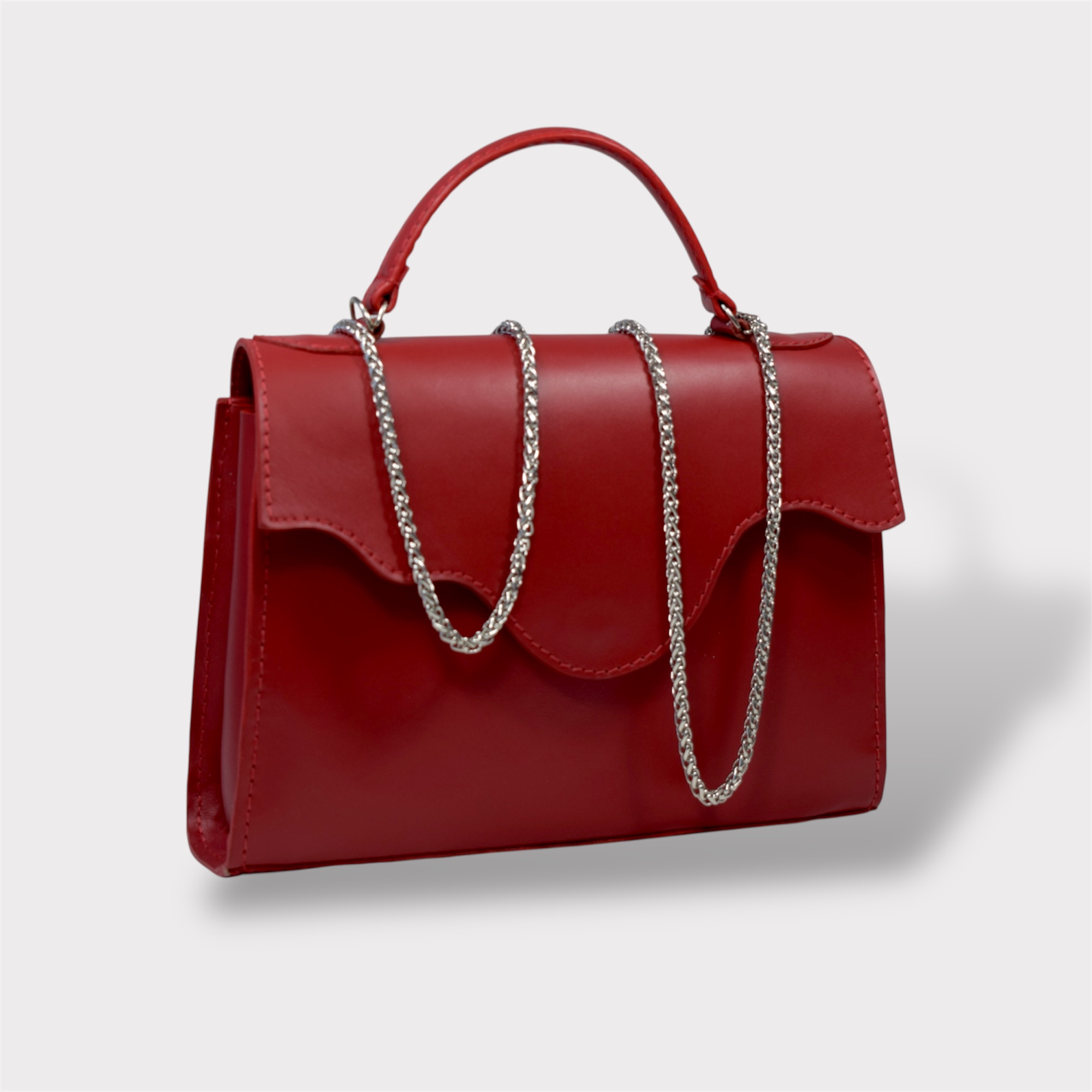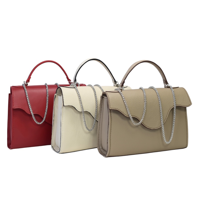 Geantă elegantă din piele naturală, cu lanț argintiu
