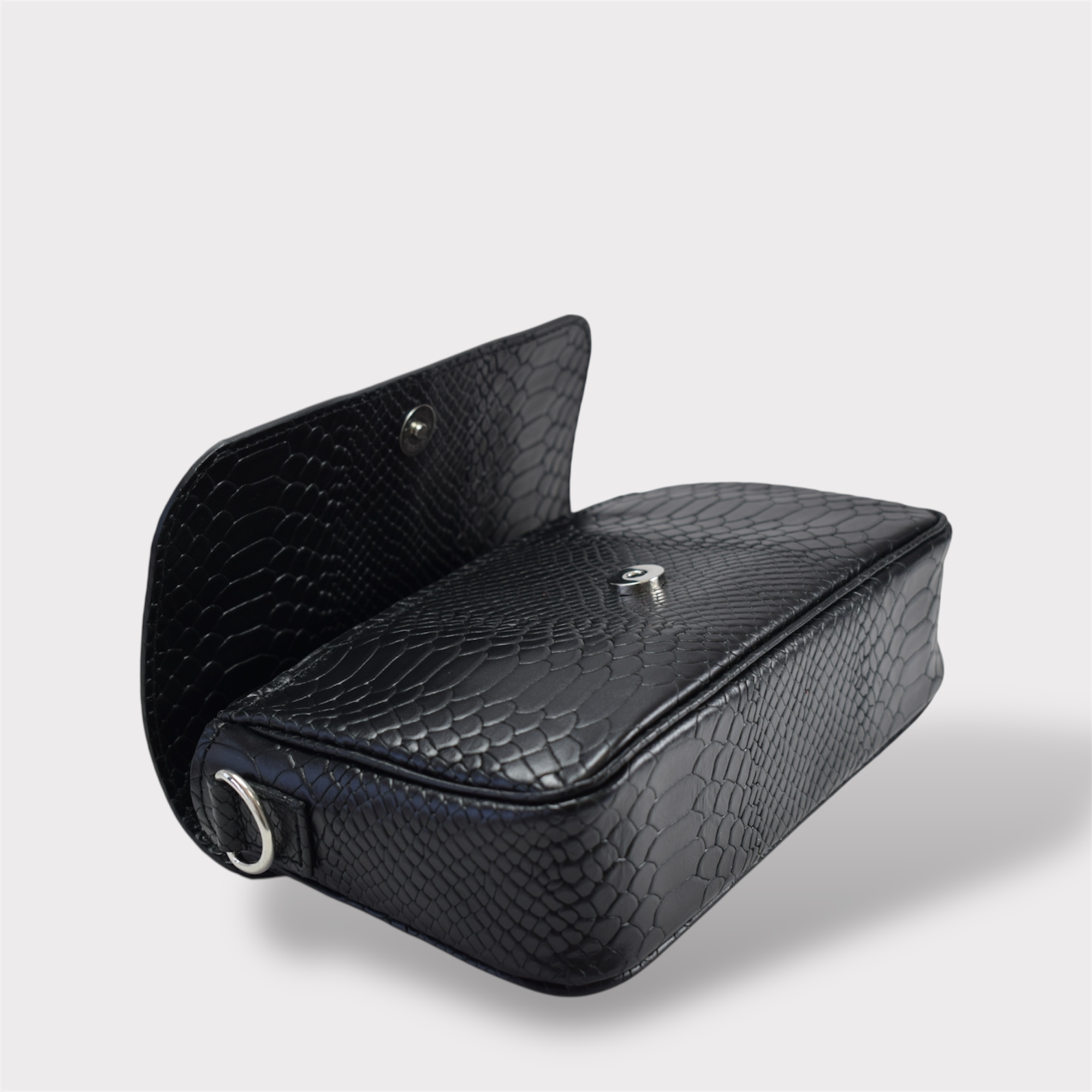 Dispune de un compartiment spațios, cu închidere cu capsă magnetică, care asigură accesul rapid la lucrurile esențiale. Cureaua ajustabilă și detaliile metalice discrete completează designul minimalist, oferindu-ți confort și libertate de mișcare.