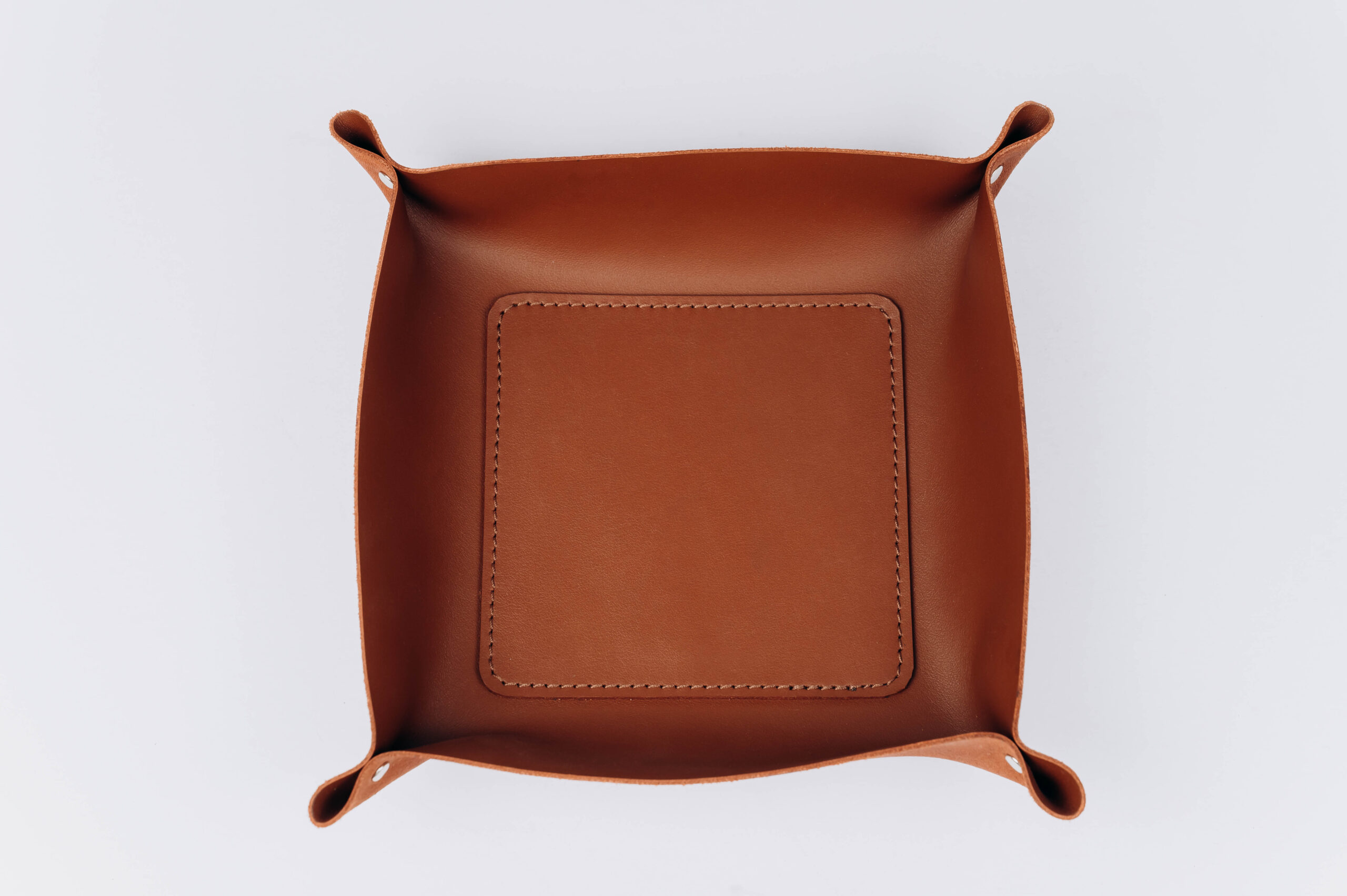 Perfectă pentru depozitarea cheilor, ceasului, telefonului, bijuteriilor, monedelor sau altor accesorii esențiale, această tăviță este gândită să păstreze totul la îndemână și în ordine, fără a compromite estetica. Forma pătrată, marginile ușor ridicate și capsele metalice de la colțuri conferă un design modern, dar atemporal, potrivit oricărui decor – de la cel minimalist, la cel clasic sau industrial.